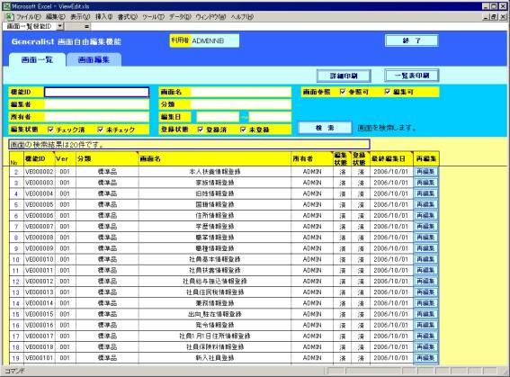 利用者の閲覧可能な既存画面を検索し、検索結果を一覧表示する画面です。