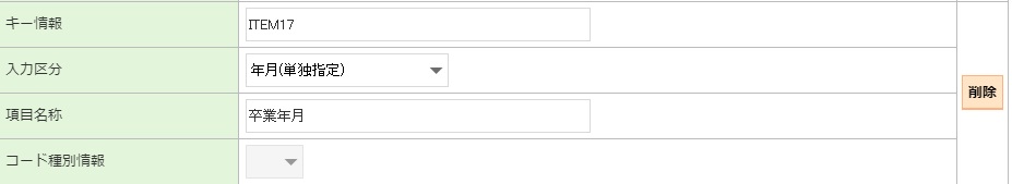 ・項目名には設定画面の項目コードに入力した項目の名称が表示されます。