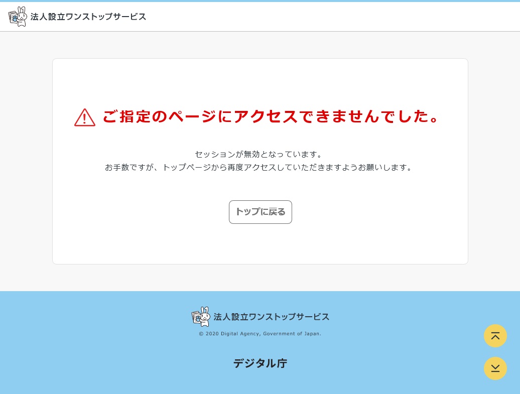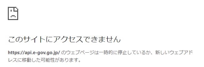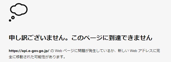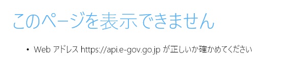 通信ができない場合は、「3. e-GovにAPI接続するための準備」の通信ができない場合と同様に画面が表示されます。