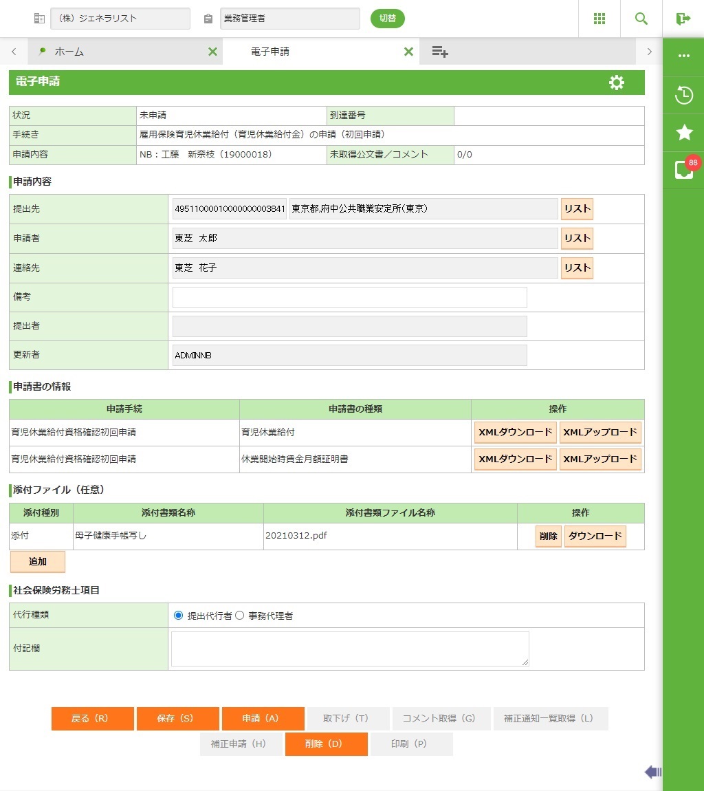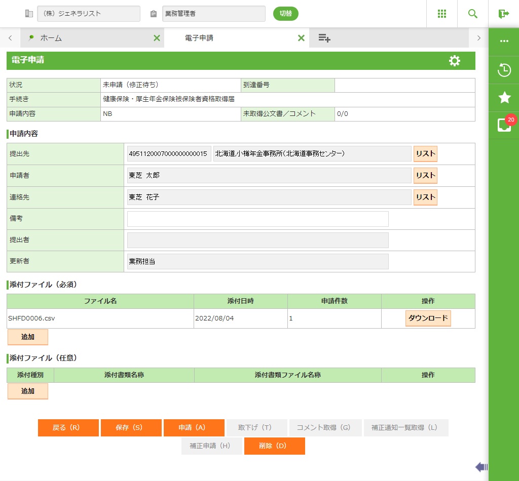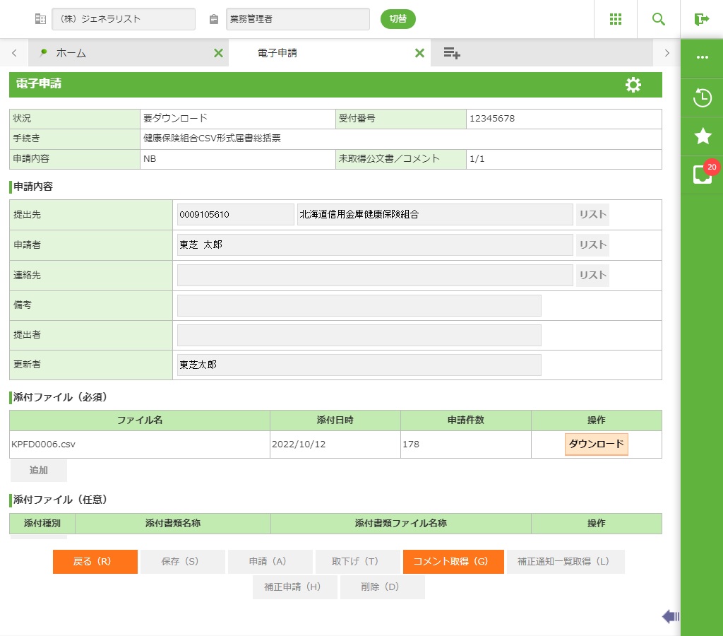 Generalist電子申請CSVファイルを取込して作成する(※) |