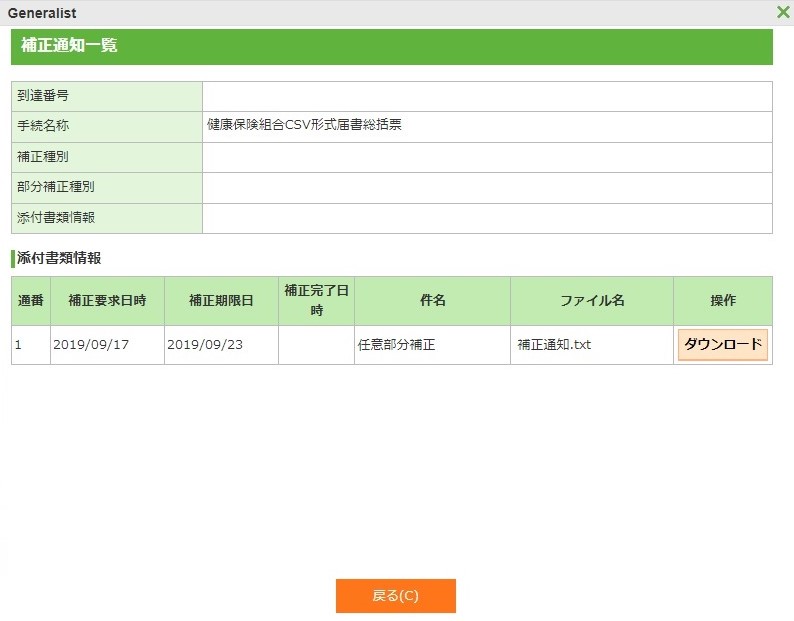 17.4.1.7 電子申請 補正通知一覧ダイアログ画面