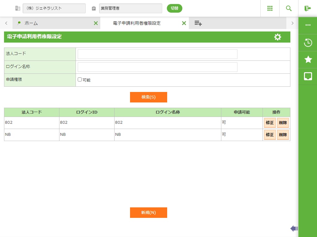 - ログイン法人の申請者