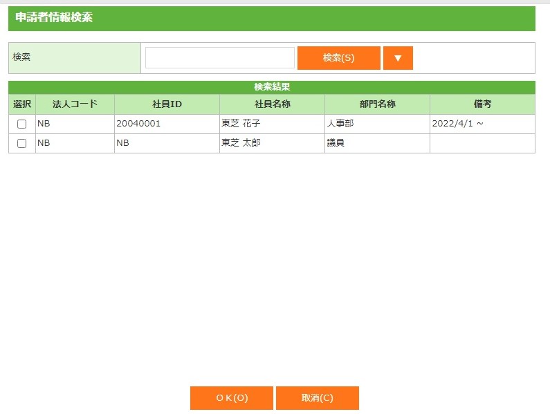 選択のチェックボックスにチェックがある申請者を詳細画面の申請者管理に表示します。 |