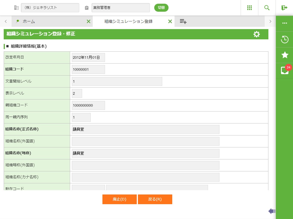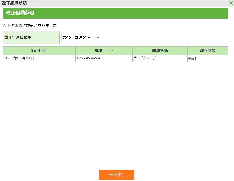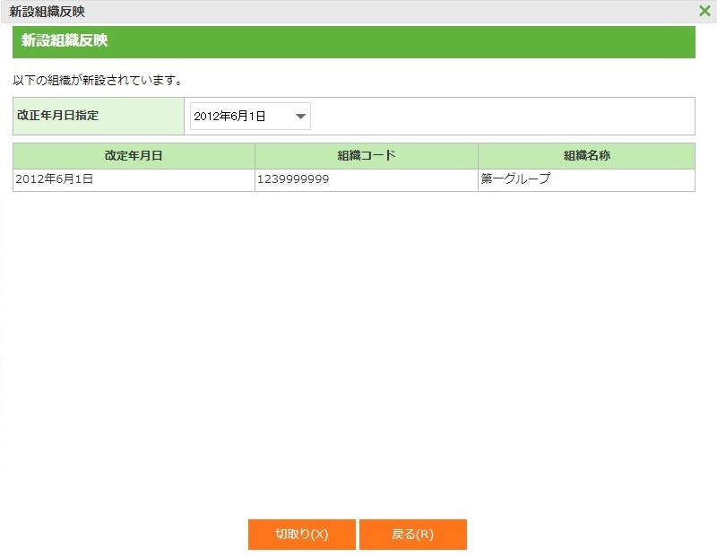 ・ 組織改正案が登録されている場合には組織改正案の改正年月日より未来の日付のみ有効となります。