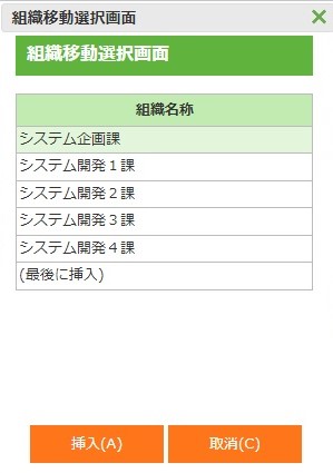 異動が発生した組織を表示します。 |