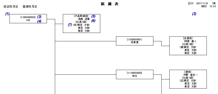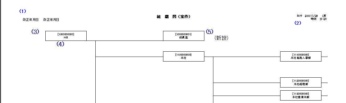 ・ 組織改正案 : 組織改正案を階層図形式で印刷します。組織図表示順に出力します。