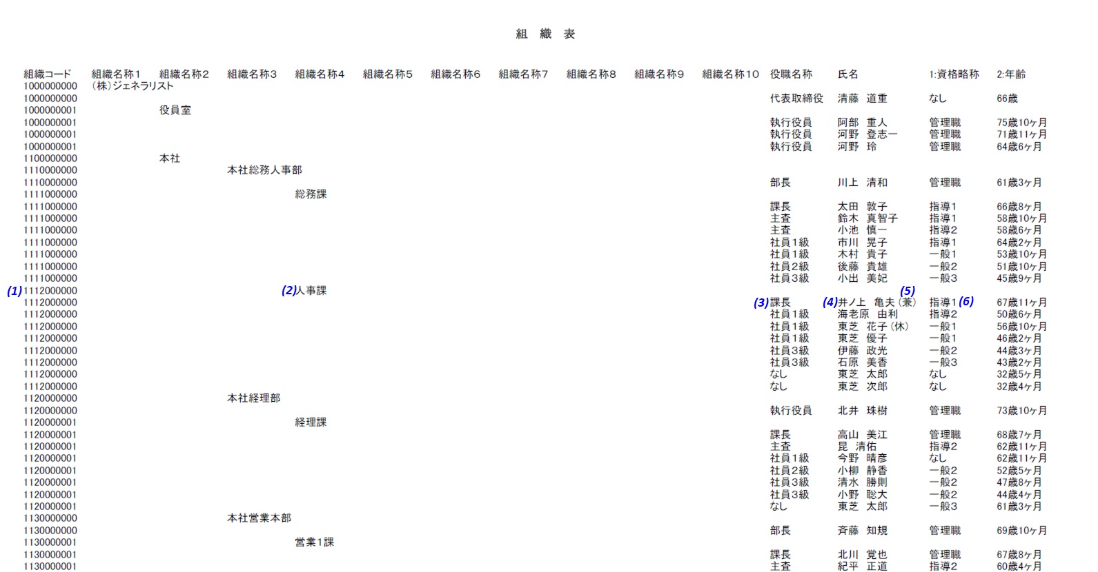 (出):出向_駐在者、(兼):兼務者、(休):休職者 |