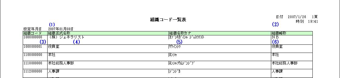 組織コード表(表記方法:日本語)【出力内容】 【サンプル帳票】