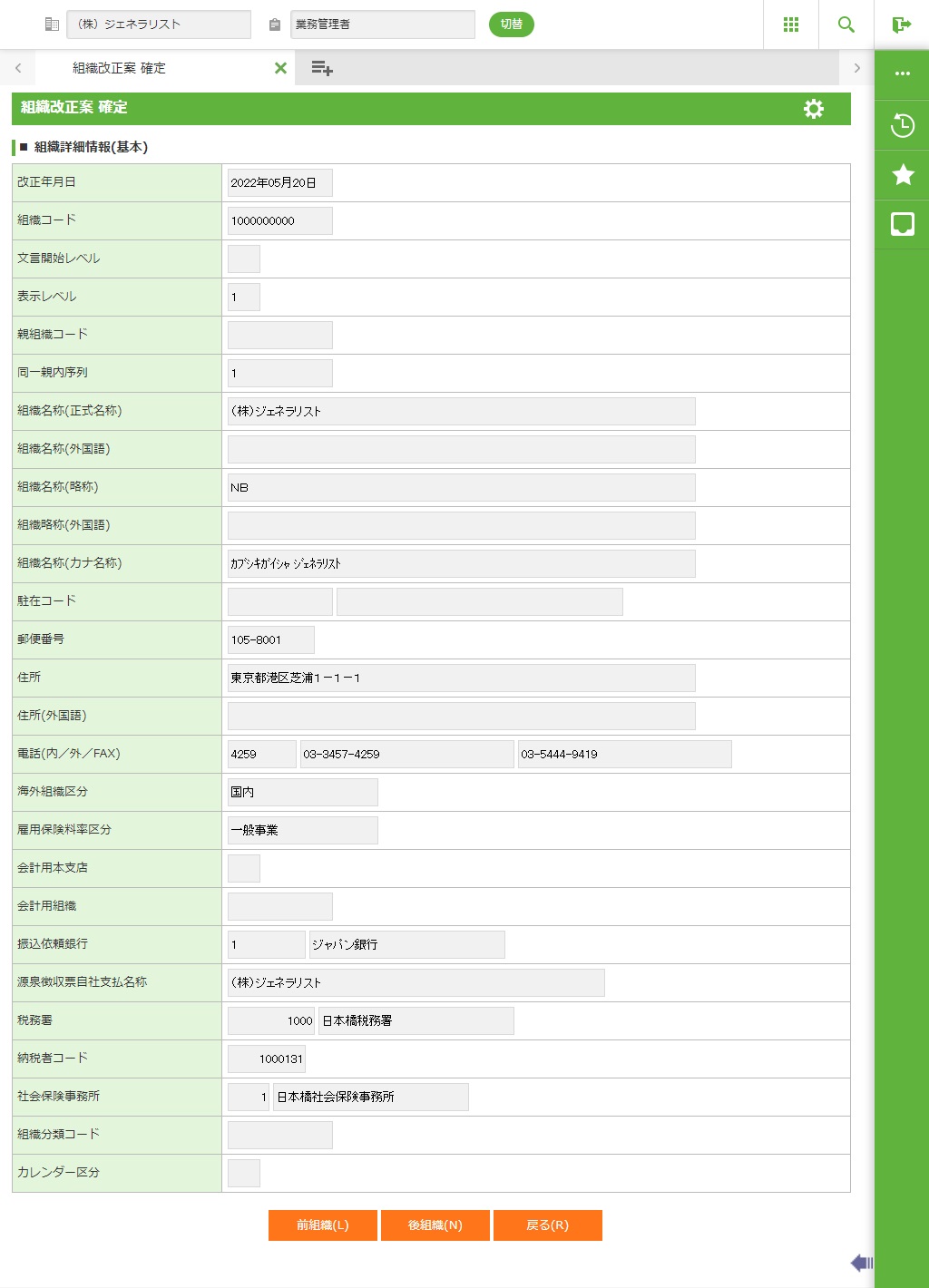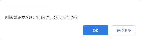 ・ 組織改正案確定画面で<確定>をクリックすると、この画面が表示されます。