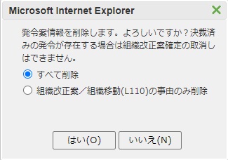 組織の改正案が確定されている場合に確定を取消します。組織改正案確定取消しメッセージ画面が表示されます。 |
