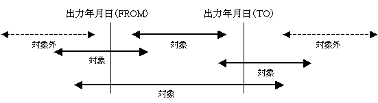 ・ 出力区分が「出力期間指定」の場合、以下のデータ(実線矢印)を対象とします。