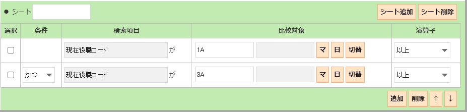 シートで現在役職コードが30と等しくないと指定すると以下のような結果が出力されます。
