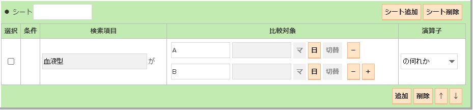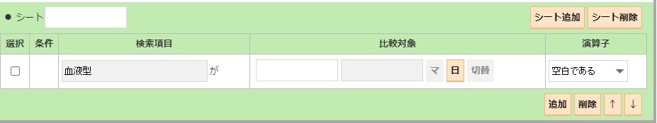 「条件種類」は「検索」、「出力」、「セット」があります。