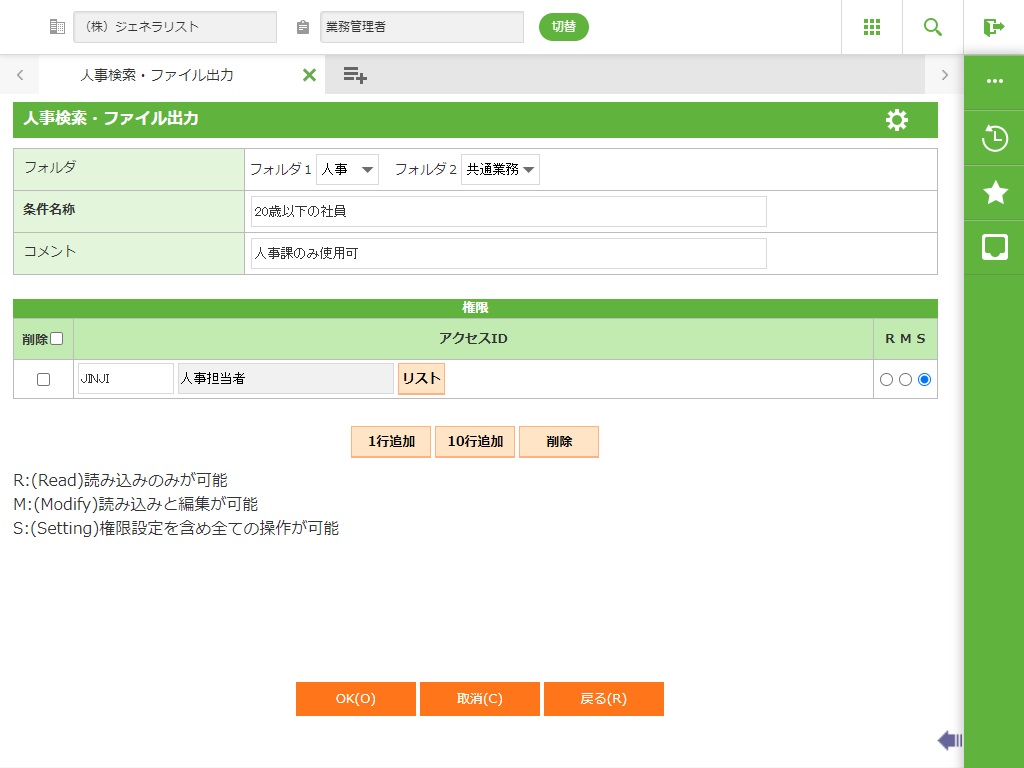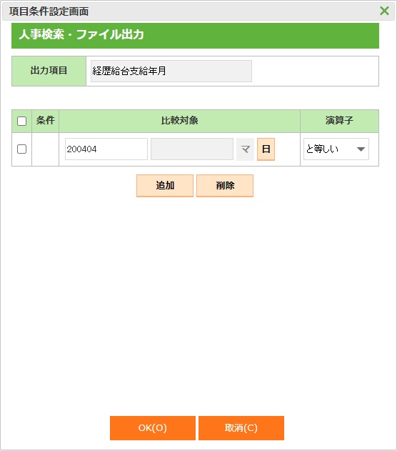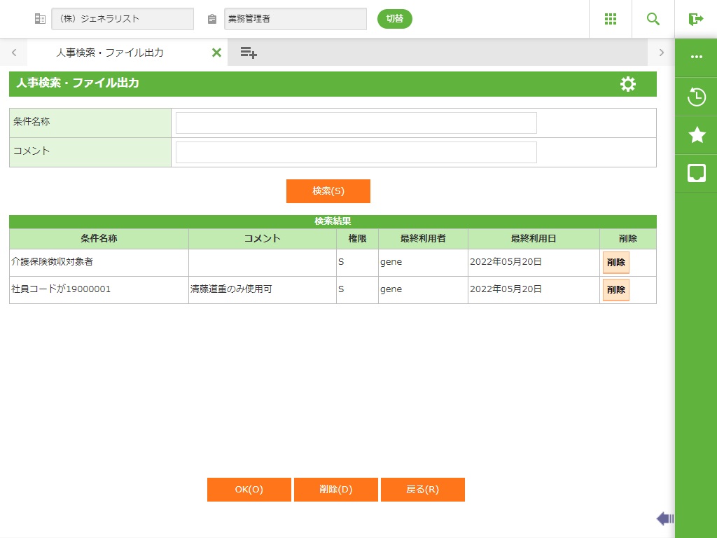 条件保存モードについては「人事検索管理マスタ」を参照してください