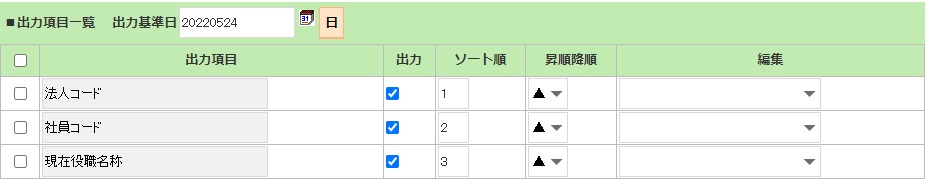 ・ 集計データ出力(機能)とマージして出力する場合、集計データには社員コードごとに対象年月の集計値を出力します。そのため、パラメータにおいて対象年月を合計項目に指定していても対象年月ごとの合計値は出力されません。また出力の際、対象年月の合計指定は空欄に更新されます。
