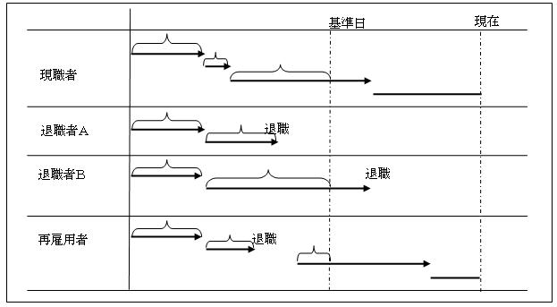 ただし、基準日時点で退職者の場合、退職の発令日に近いマスタ情報(退職の発令日≧マスタの改定年月日)を参照します。