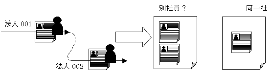 例)法人001を退職、法人002に在籍している場合は、法人002のみ抽出されます。