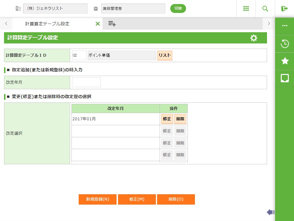 改定の追加または新規登録する際の改定年月を入力します。 |