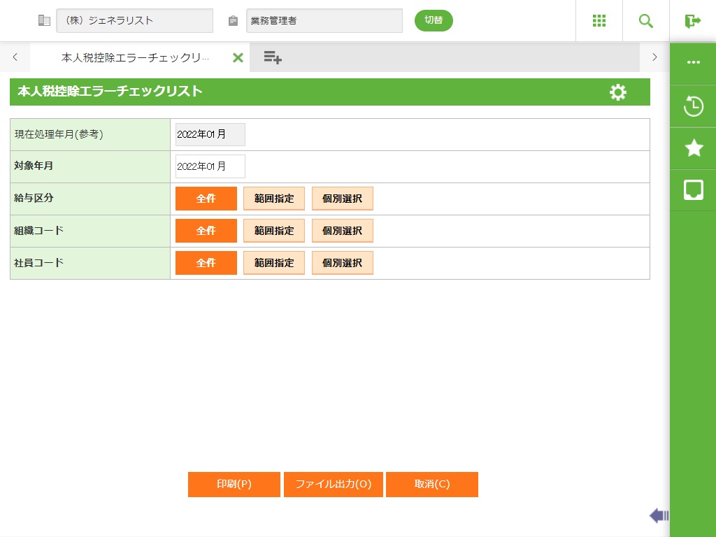 ・ 入力した対象年月における、給与支給対象者に対してエラーチェックを行います。