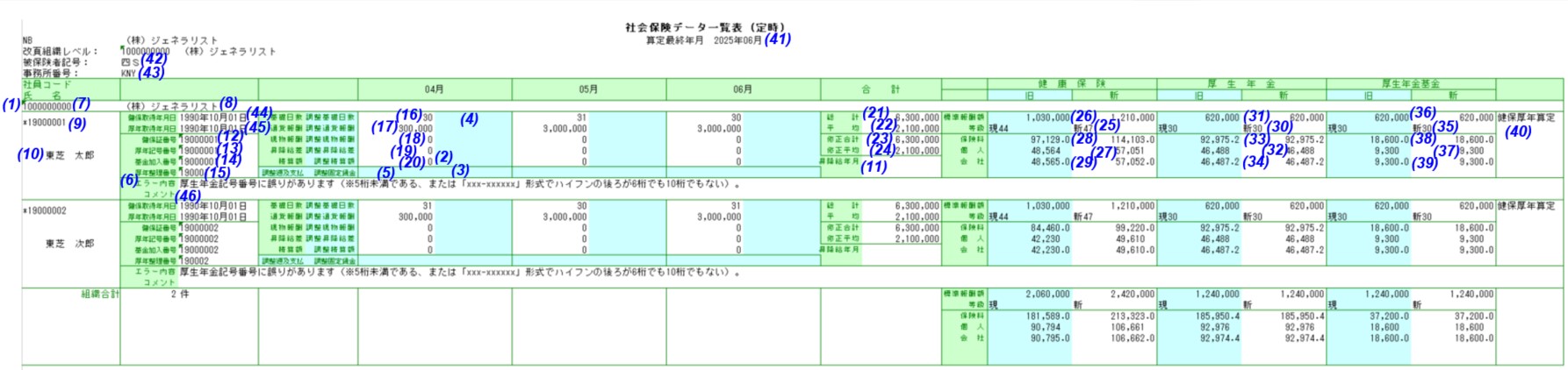 社会保険データ一覧表 【フォーマット】 【サンプルファイル】