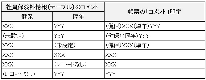 コメントは、健保と厚年でそれぞれのレコードに登録されます。健保と厚年でコメント内容が異なる場合は「(健保)」「(厚年)」を先頭に付加し、1行でコメントを出力します。