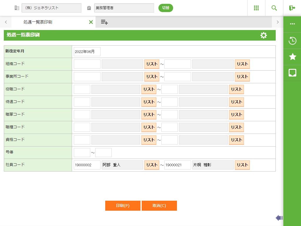 処遇変更を出力して、改定の内容を確認できます。