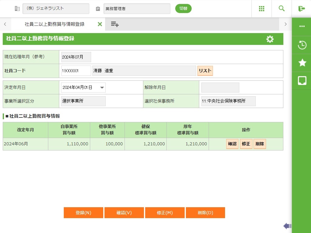 二以上事業所勤務者(二以上の事業所に勤務し、それぞれの事業所で社会保険が適用される社員)の賞与における社会保険情報の登録を行います。