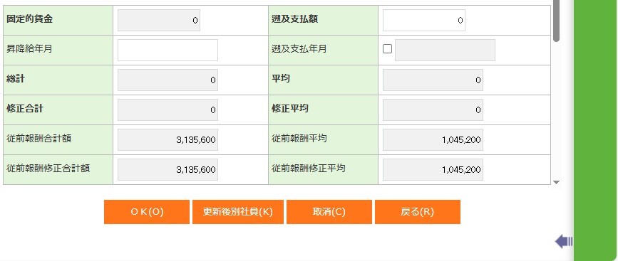 従前の報酬修正平均を入力します。(※1) |