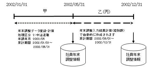 ※乙(丙)の期間については、処理区分=1:年末調整で「過不足税額算出の有無」のチェックを外してください。