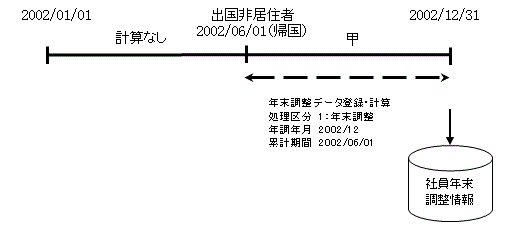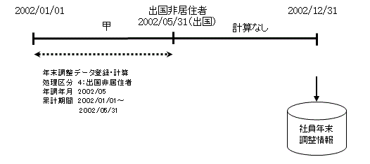 ※甲の期間について、退職していない場合は処理区分=4:出国非居住者で処理してください。