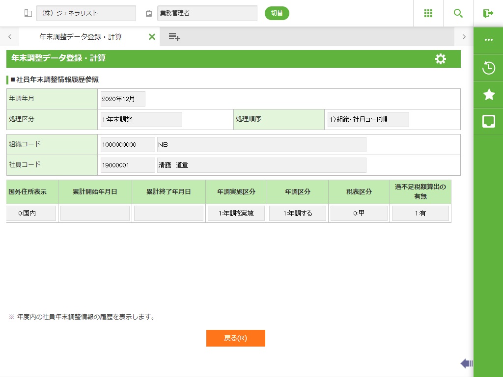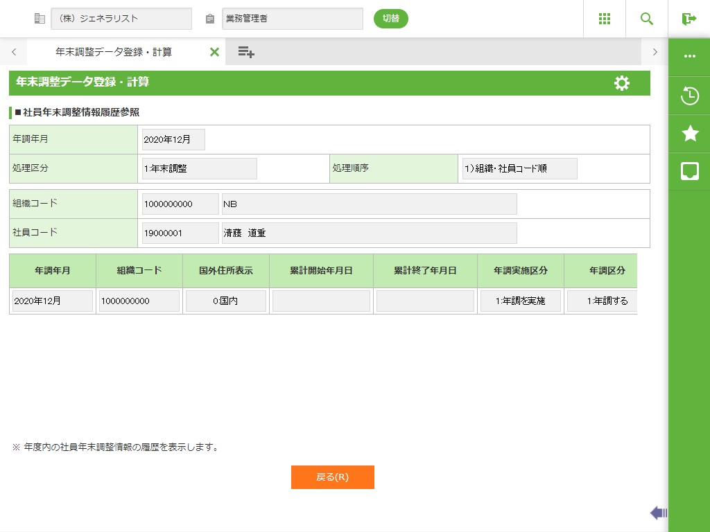 年調調整詳細情報 |