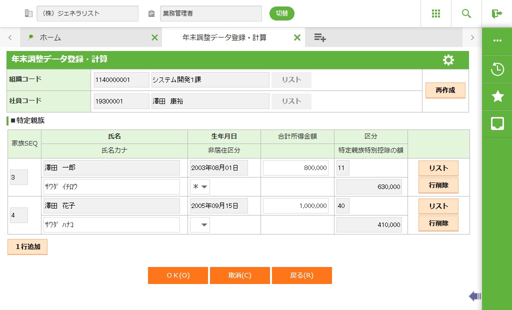 社員所得調整親族情報の家族と重複 |