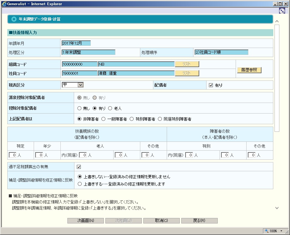 老人:同居老人扶養親族者人数を含む老人扶養親族者人数を入力します。 |