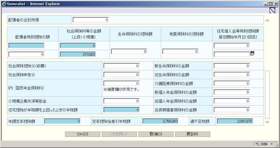 ・ 各控除額入力欄には、控除額を設定してください。控除上限額を超えた値を入力した場合、その値で過不足税を計算します。