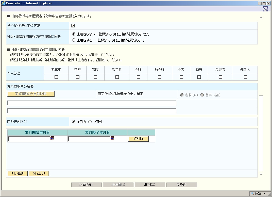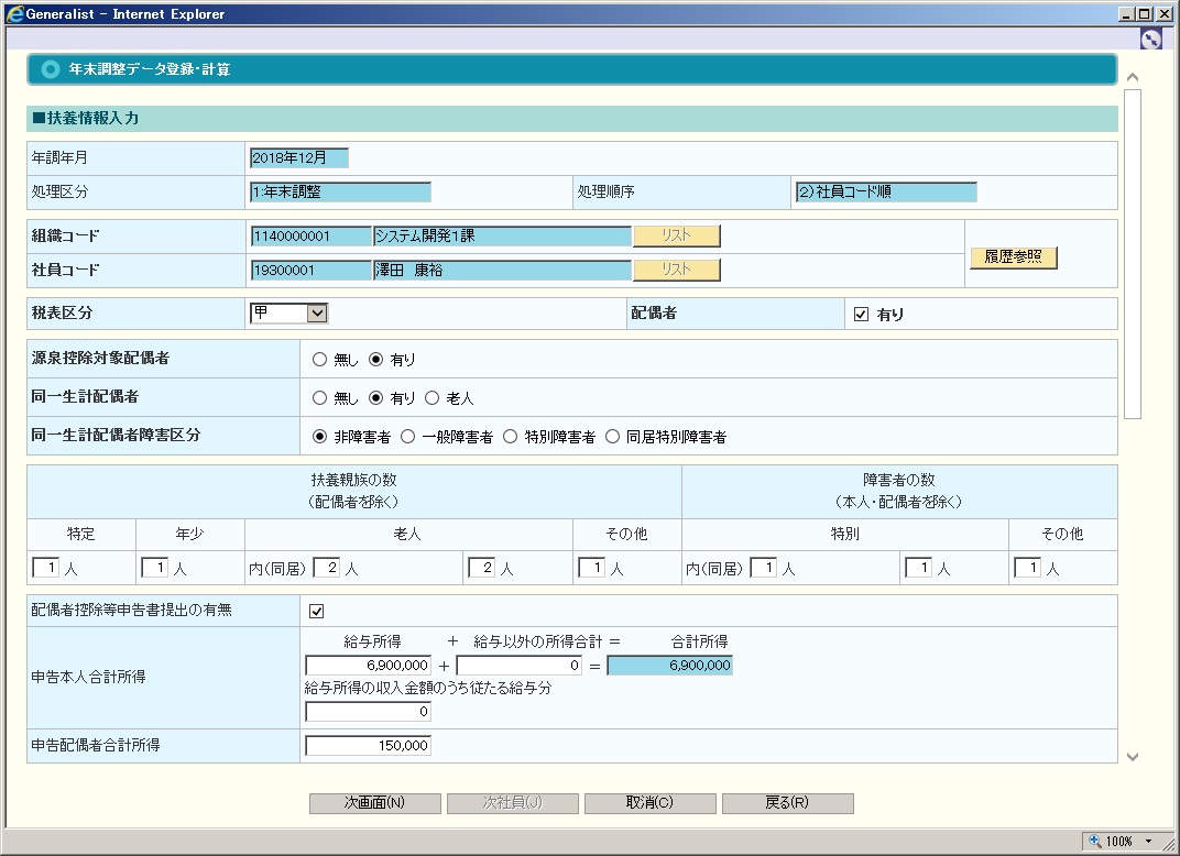 老人:同居老人扶養親族者人数を含む老人扶養親族者人数を入力します。 |