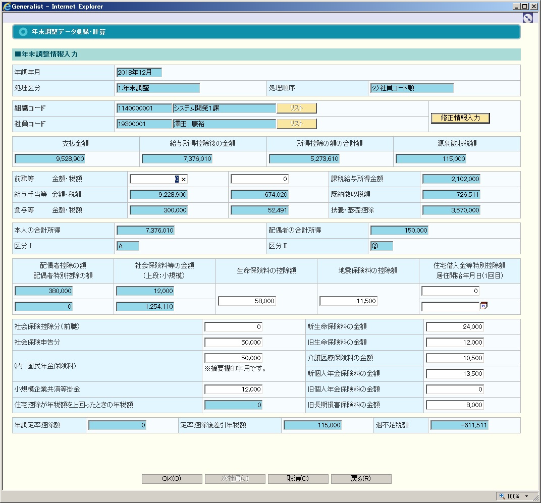 @年末調整入力結果計算(控除額)や、年末調整計算処理後の場合