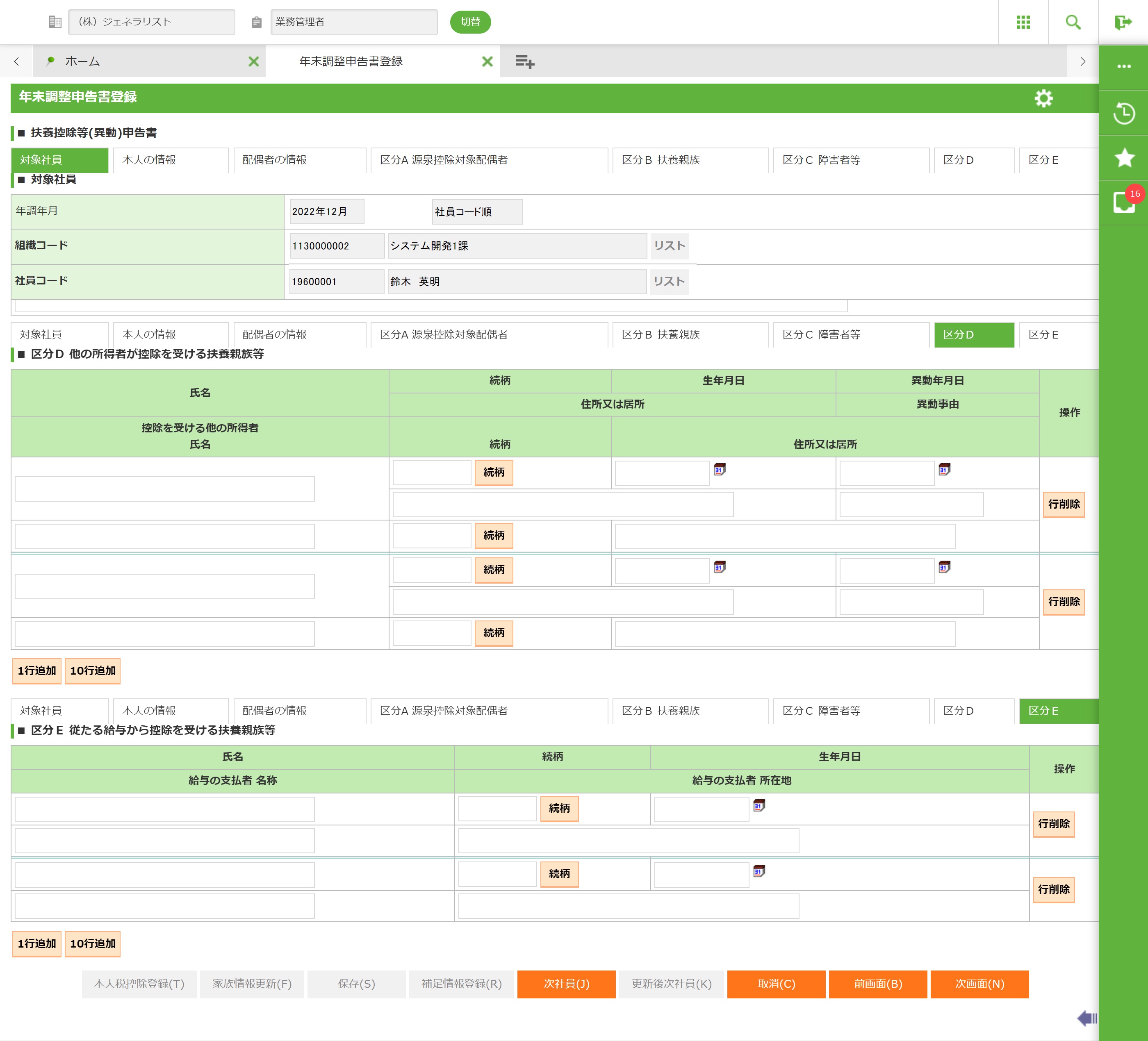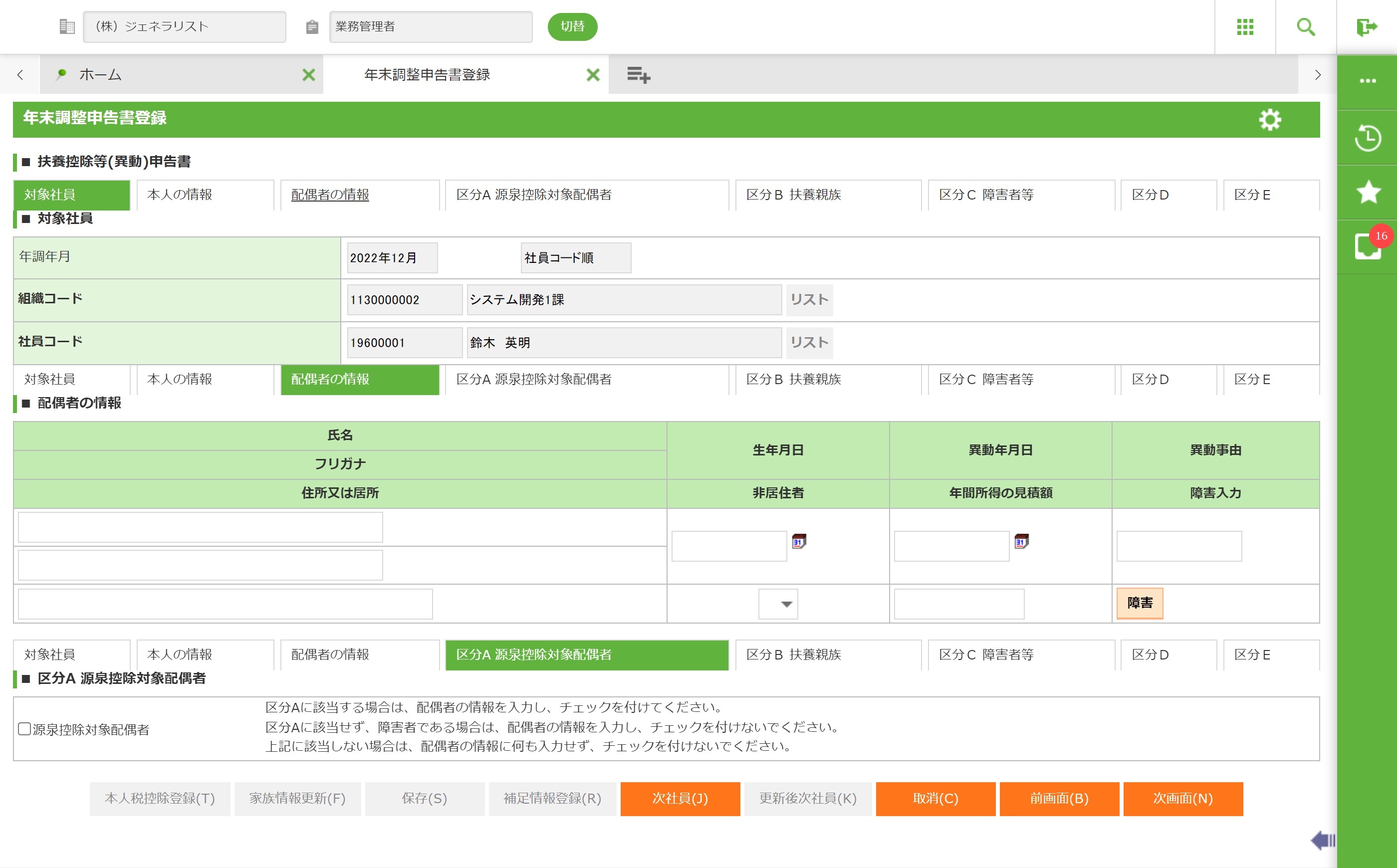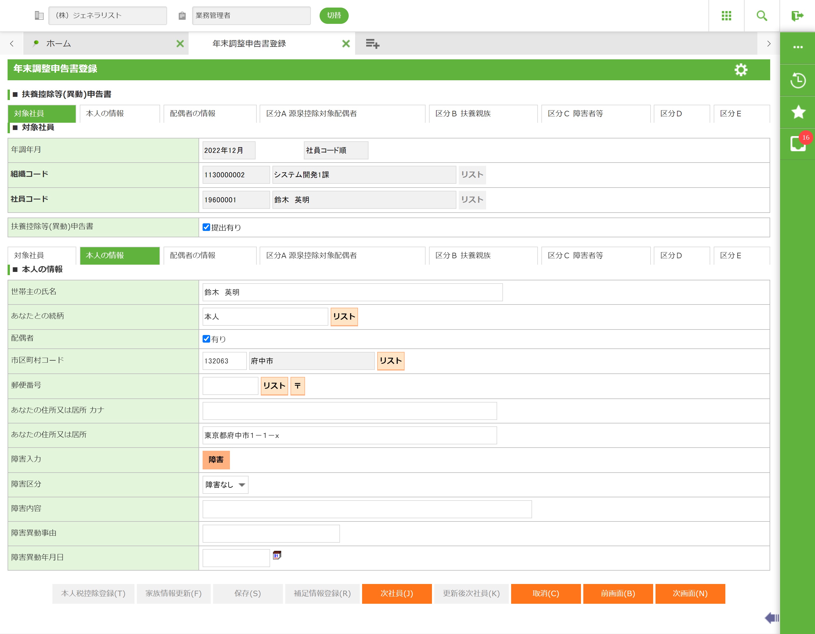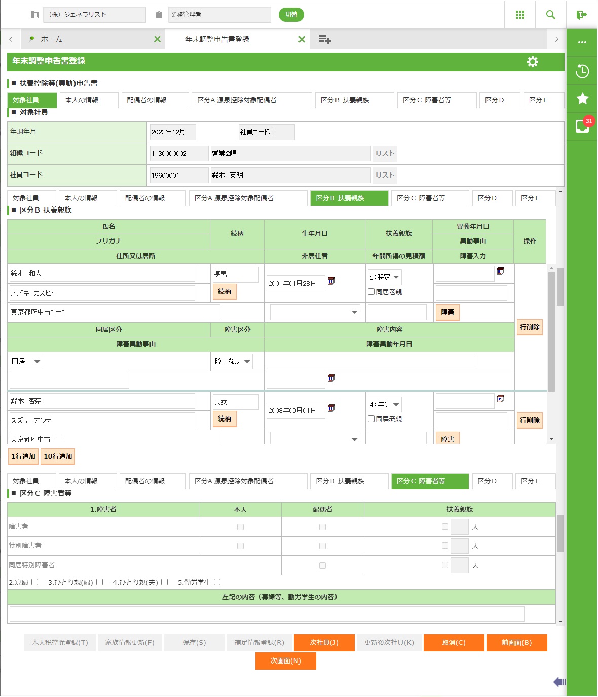 3.6.5.2 年末調整申告書登録画面−2 扶養控除等(異動)申告書登録画面
