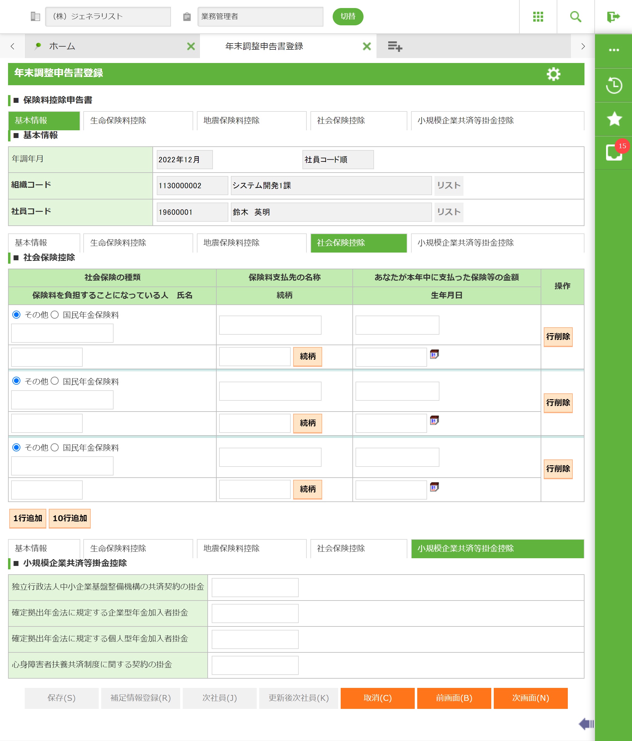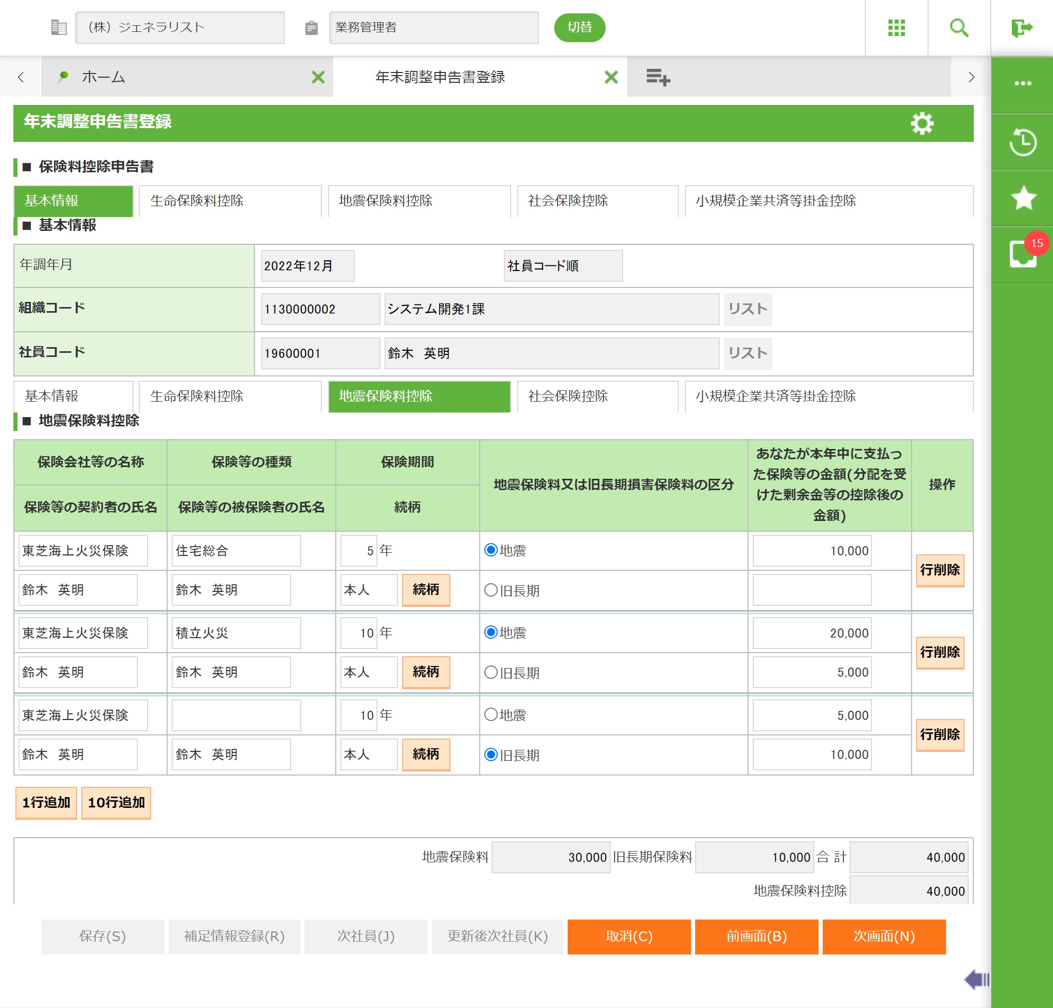 3.6.5.3 年末調整申告書登録画面−3 保険料控除申告書登録画面