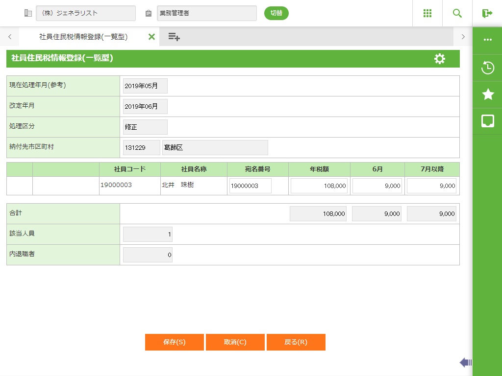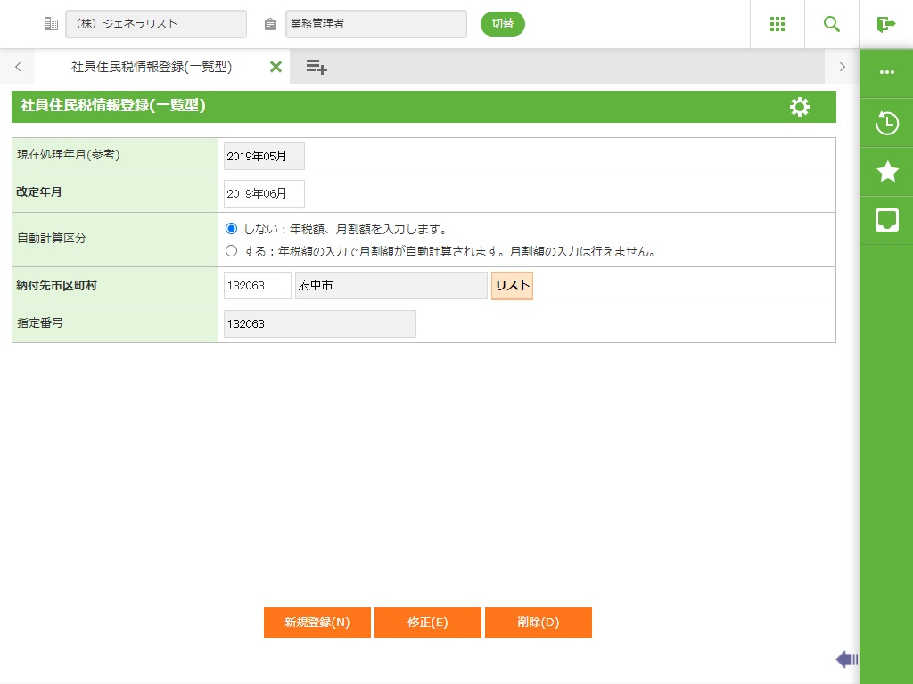 ・ 住民税の改定に関する入力を一覧型で行います。