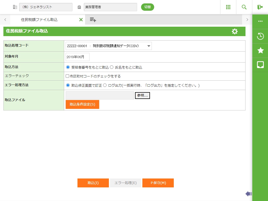 3.1.38.3 住民税額ファイル取込 P保守画面