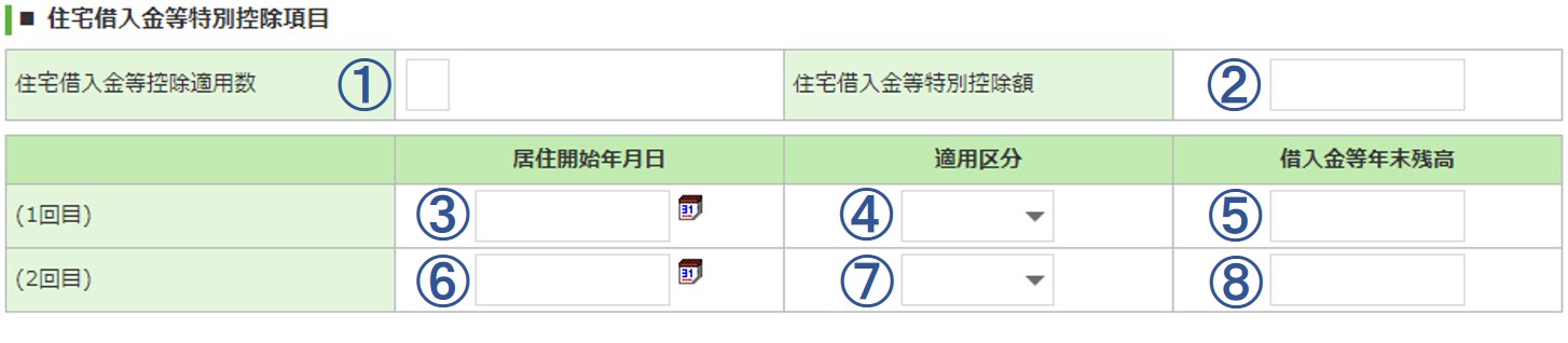 住借控除適用数に「1」、2回目の住借控除項目の設定がされている場合は「2」を設定しました |