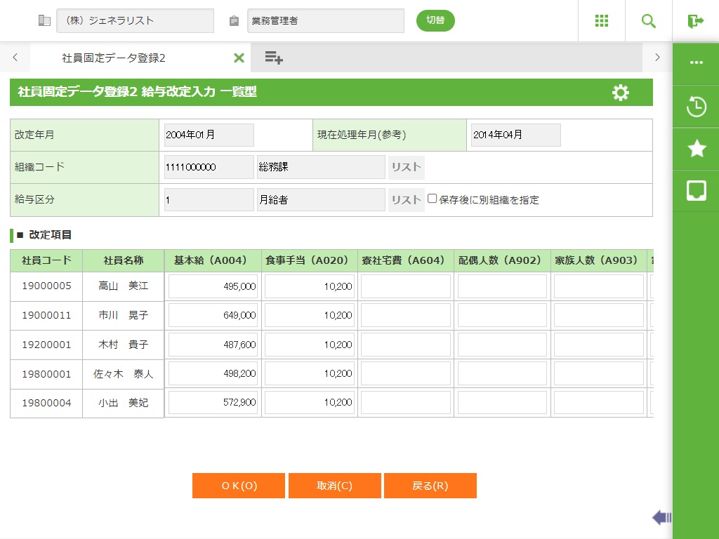 ・ 給与・賞与の改定に関する入力を一覧型で行います。