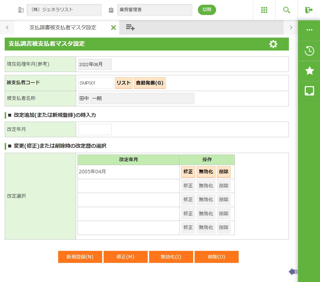 処理を行う改定年月を選択し、修正・無効化・削除を行います。 |