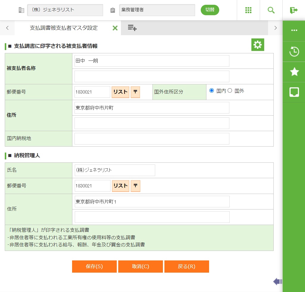 支払調書の被支払者(支払を受ける者)に関する情報を登録、修正、削除します。