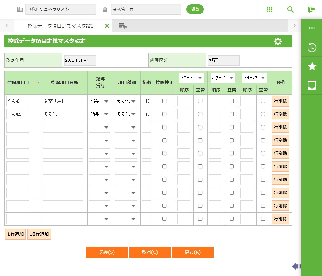 ・ 法人一括での取込処理への対応の為、控除項目コードを統一しメンテナンスを一括して行ってください。法人コード別にマスタを作成できません。