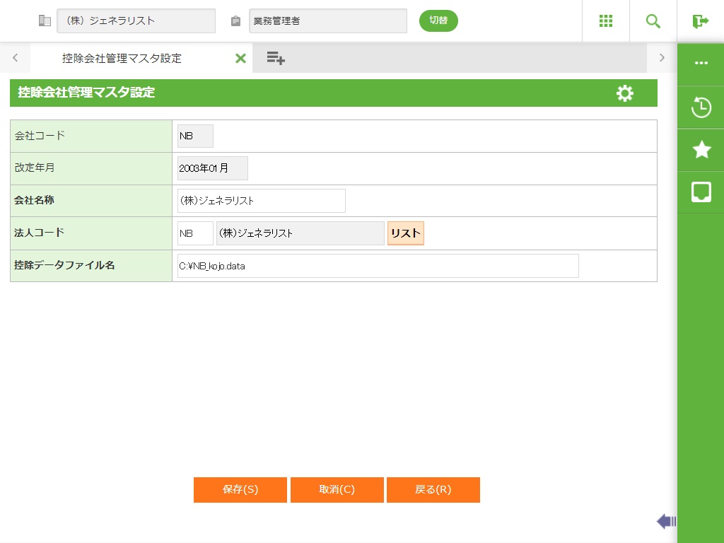 ・ 法人名マスタに登録されている各法人の会社コードは法人コードと同一にして下さい。