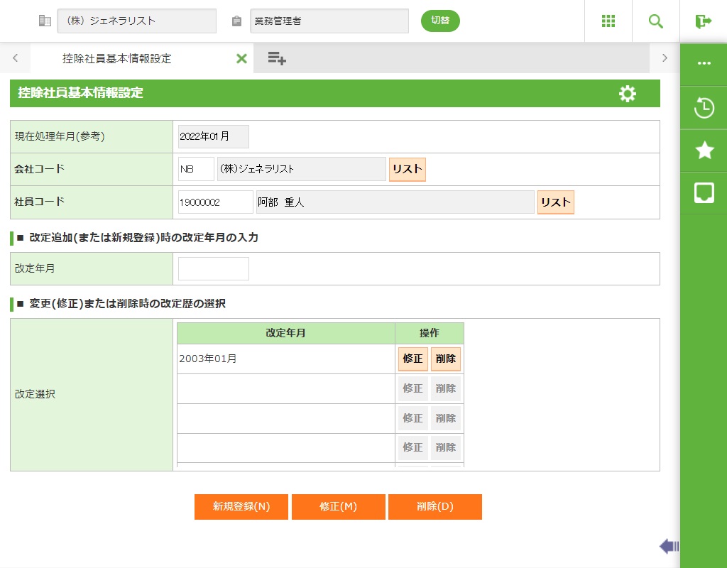 新規登録時は、改定年月を西暦6桁または和暦5桁(元号は和暦省略入力記号(アルファベット1文字))で入力します。 |