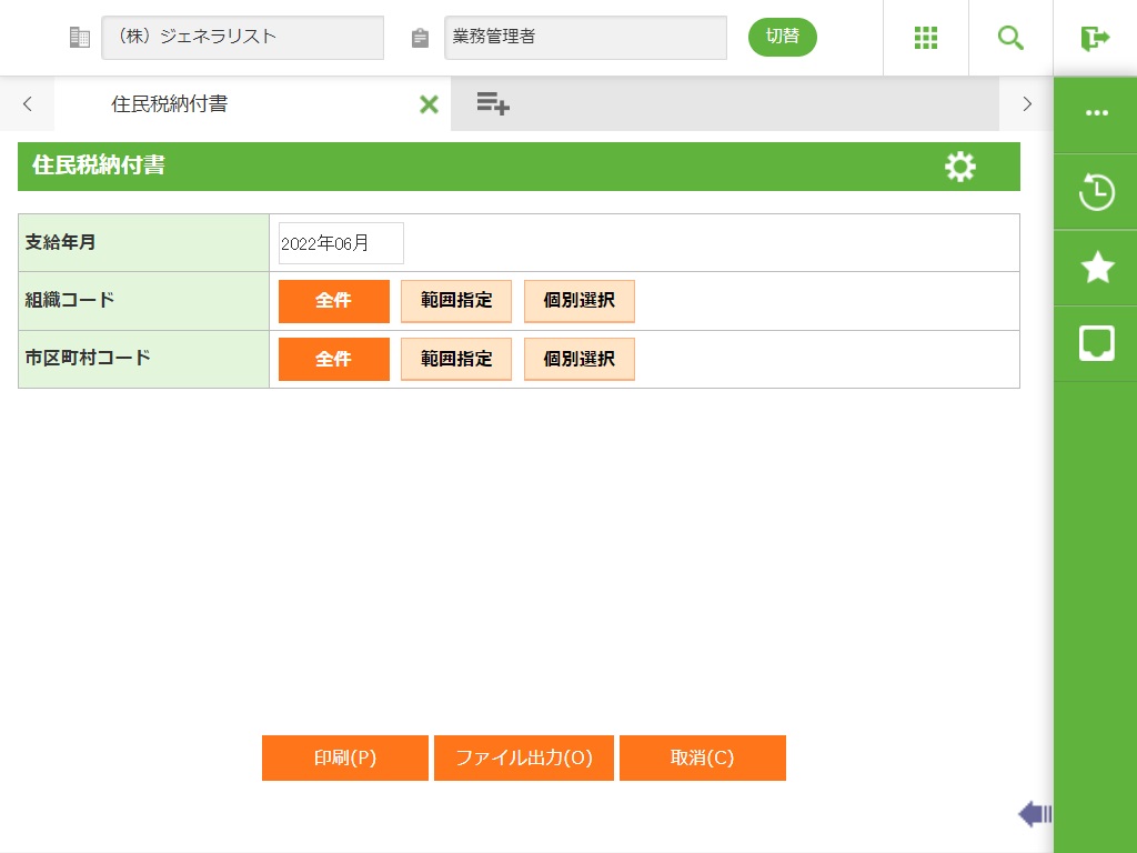 市区町村に提出する住民税納付書を出力します。