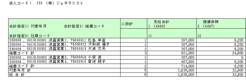 集計データ出力(ページ形式)(従来レイアウト) 【サンプル帳票】