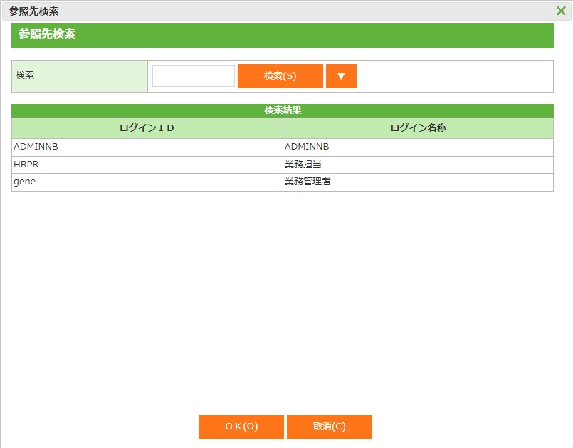 ・ 抽出条件設定・処理実行画面の「帳票ID」の抽出条件が保存済みであるログインIDの一覧を表示します。